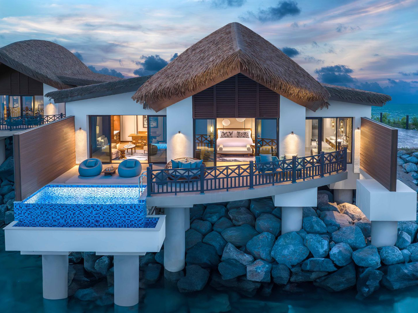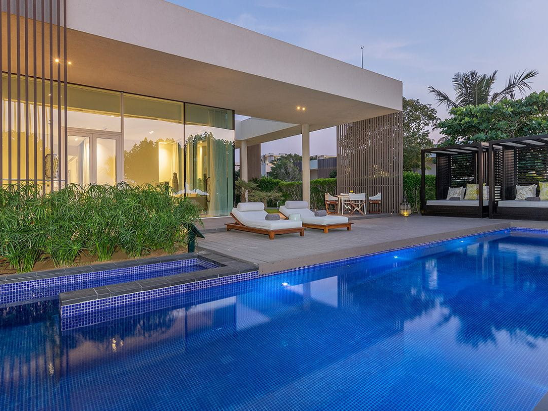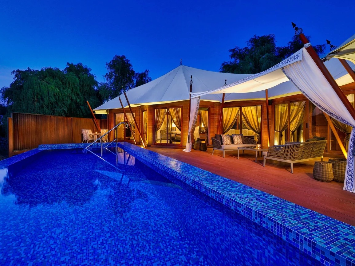 Anantara’s latest jewel in Ras Al Khaimah brings the brand’s signature Thai-inspired luxury to the Arabian Gulf, offering the region’s first overwater villas. Suspended above calm turquoise waters, these villas feature glass floor panels for viewing marine life below, along with outdoor decks, private infinity pools, and panoramic views of the sea. Inside, the interiors blend modern Arabian elements with Asian design—rich wood tones, handcrafted furniture, and oversized soaking tubs. For those preferring garden surroundings, the resort also offers lagoon and beachfront villas with direct access to the shoreline. Guests can indulge in Anantara’s award-winning spa, dine at overwater restaurants offering global cuisine, or explore the surrounding nature reserve through kayaking and eco-tours. The setting is intimate and tranquil, ideal for honeymooners or anyone seeking privacy wrapped in luxury.