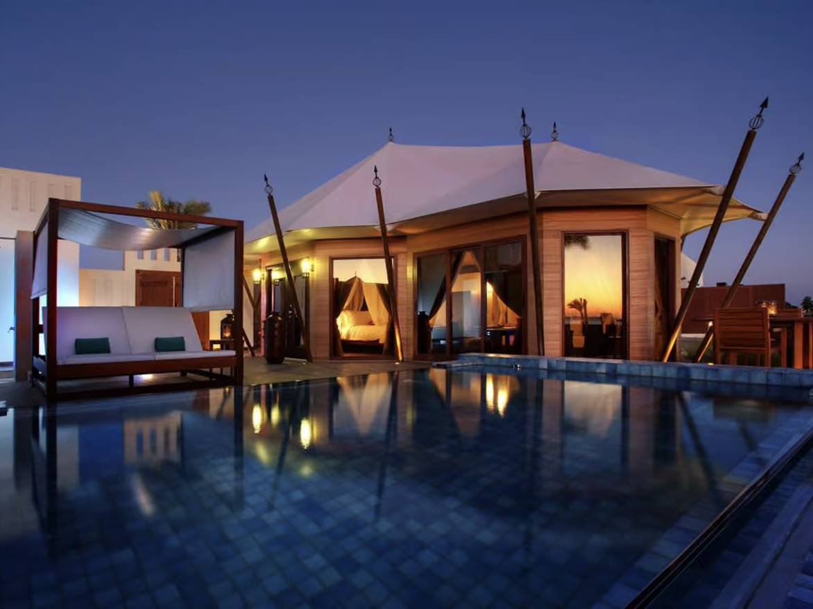 An exclusive beachfront sanctuary, The Ritz-Carlton Ras Al Khaimah, Al Hamra Beach features 32 private villas, each offering a secluded haven with a private pool, cabana, and direct access to the pristine beach. Designed with modern Arabian elegance, the villas provide a serene environment where guests can unwind in luxury. The resort offers personalized wellness rituals, beachfront dining experiences, and a variety of water sports, all complemented by the legendary Ritz-Carlton service. The tranquil setting and bespoke experiences make it an ideal destination for those seeking privacy and relaxation by the sea.